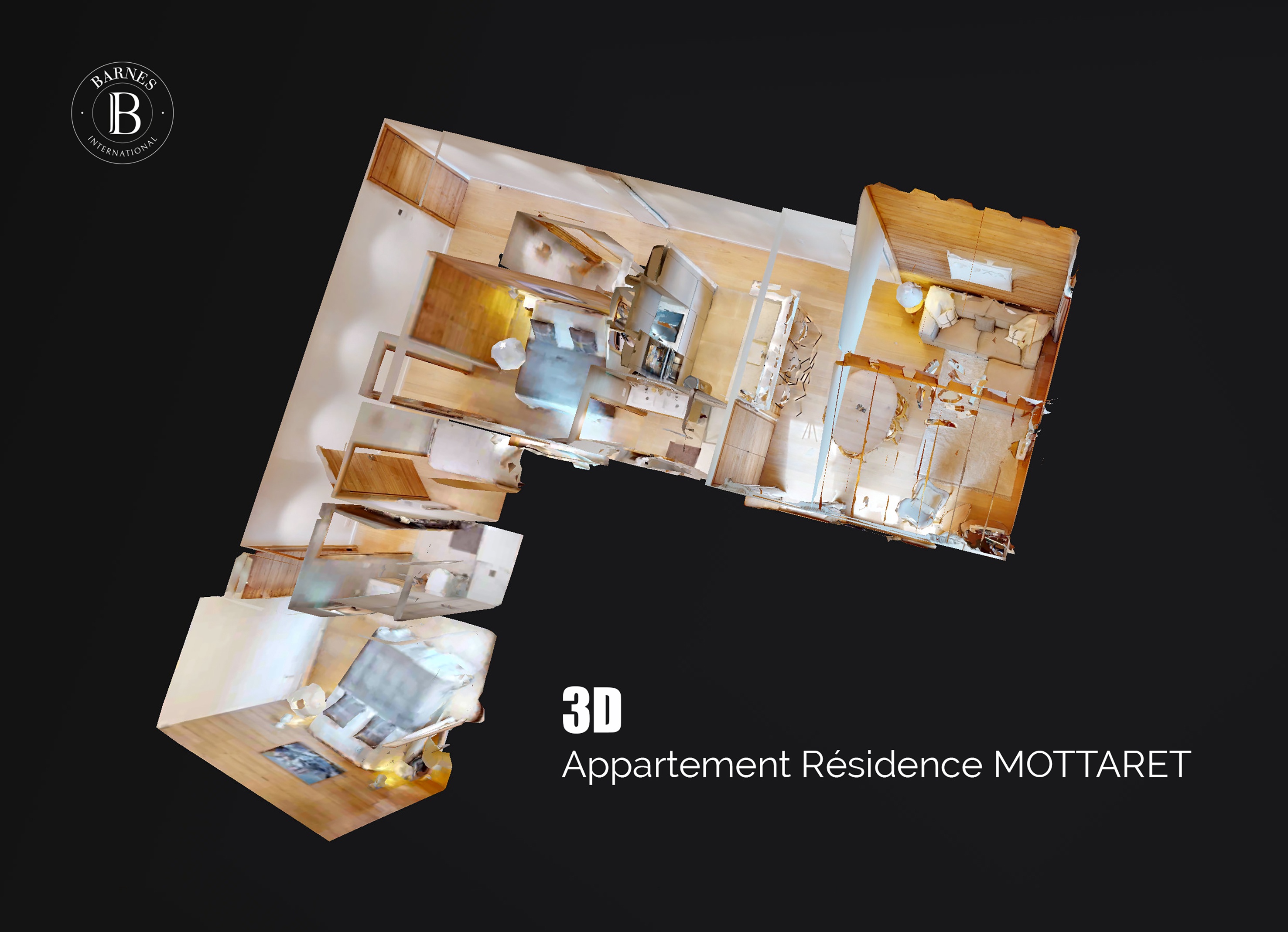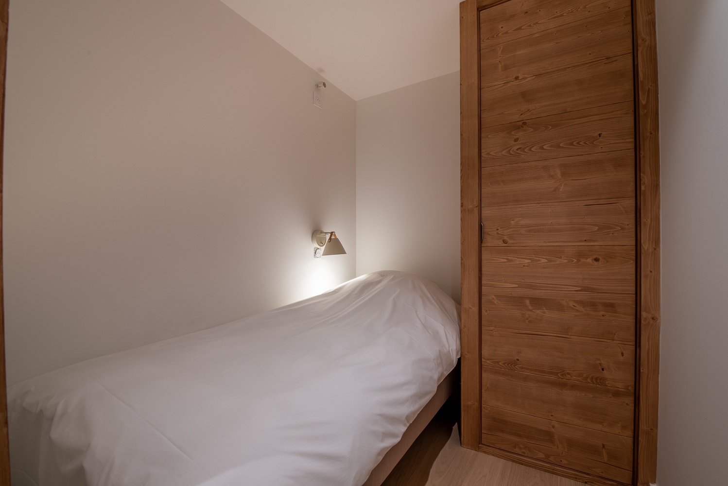 It boasts a spacious living room and a large terrace with stunning views over the valley and the Saulire.