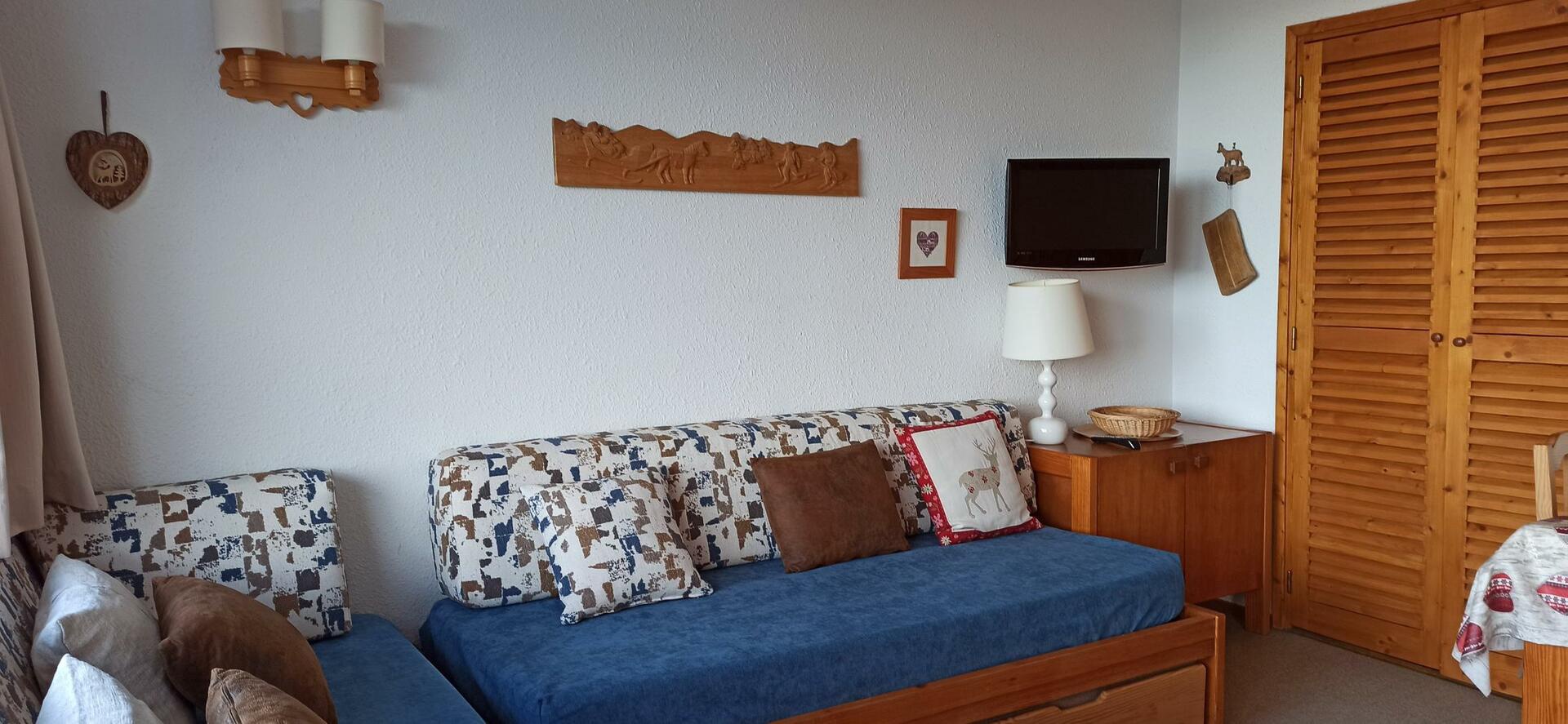 Séjour très lumineux avec deux banquettes-lit 90/190, table extensible, 4 chaises, 1 table basse
