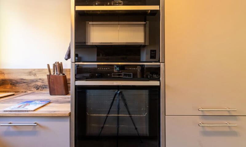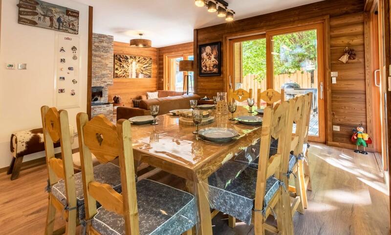 Au rez-de-chaussée, une cuisine moderne tout équipée s'offre à vous. Elle se prolonge naturellement vers une salle à manger élégante, faisant de cet espace un lieu idéal pour des repas conviviaux. Le salon, agrémenté d'un bel insert, offre une atmosphère chaleureuse, parfaite pour se détendre après une journée sur les pistes.