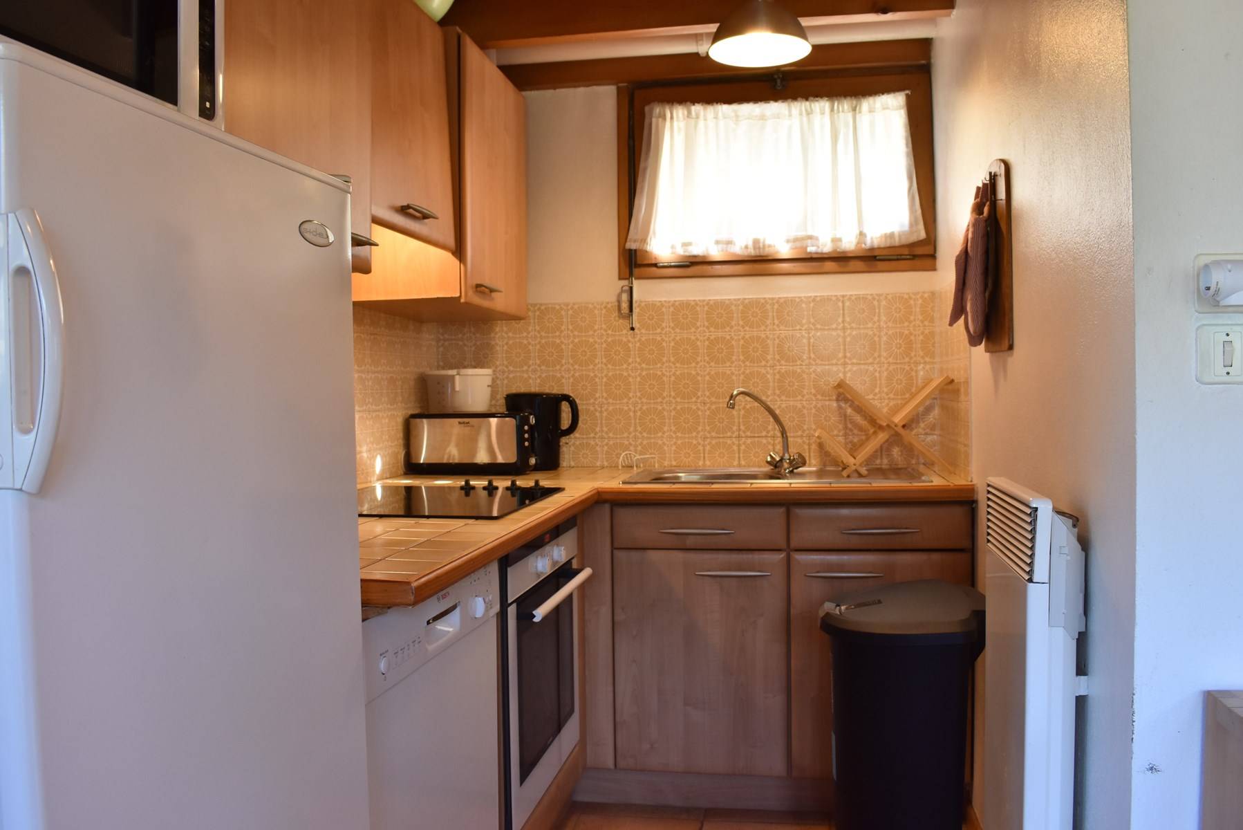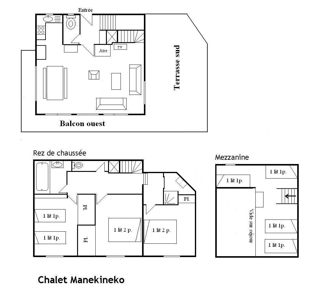C'est un chalet avec terrasse Ouest comprenant une cuisine équipée avec lave-vaisselle ouverte sur le séjour avec un coin repas, un salon avec 2 canapés,une télévision, 1 cheminée et un 1 WC indépendant. A l'étage, 1 mezzanine soupentée avec d'un côté 2 lits 1 personne ( 80x190) et de l'autre 2 coins cabines avec 1 lit 1 personne ( 90x190) + (80x190). Au niveau -1, 1 chambre 1 lit 2 personnes